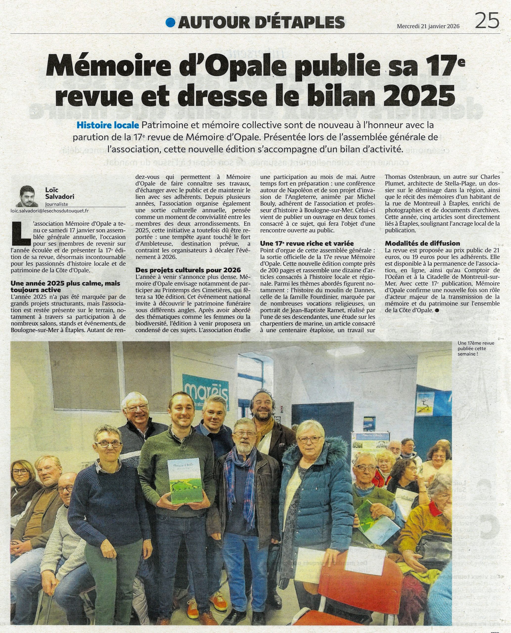 Découvrez tous les articles de presse écrite, magazines et Internet, mais aussi reportages radio ou émissions TV, diffusés au sujet de Mémoire d’Opale.